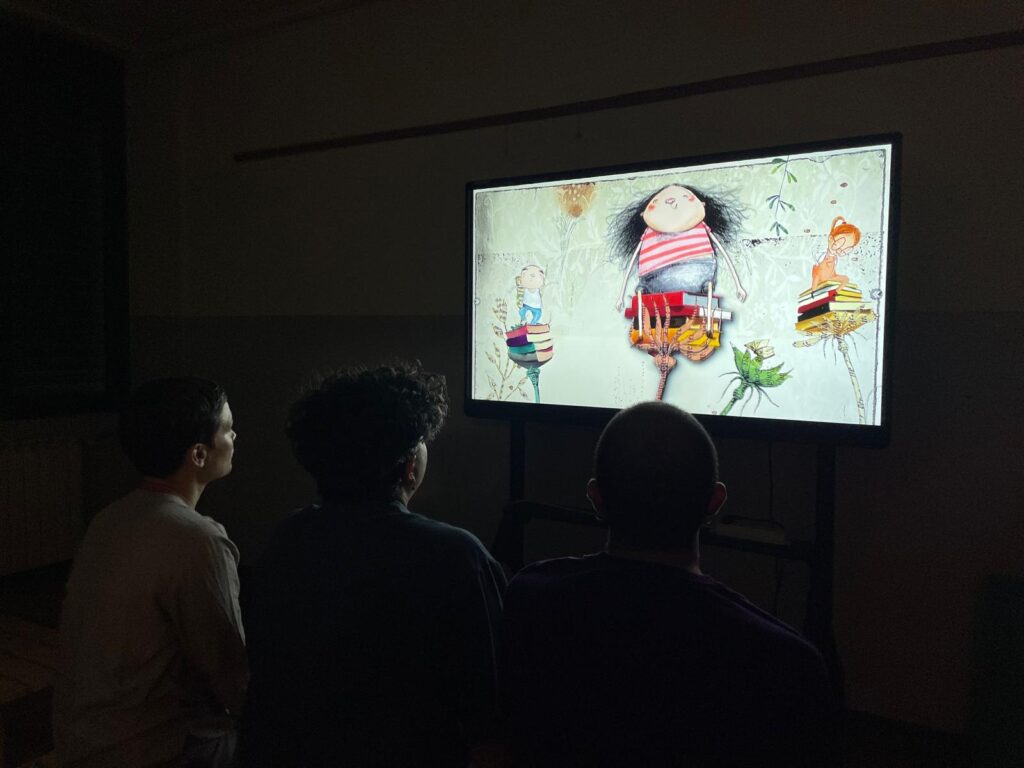 The Zoom Out project was present at the Scosse stand with illustrated posters created by Cristina Zafra for the awareness campaign, an accompanying exhibition, and screenings of animated videos in a public, freely accessible room.